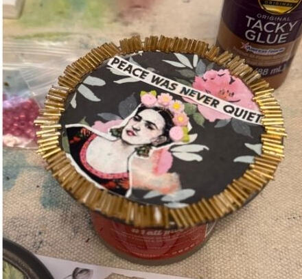We'll gather around linen-covered tables in the Blue Ridge foothills, work with suffragette imagery, vintage photographs of working women, protest ephemera, bold trims, and orange pom poms, and build assemblage pieces that carry the energy of every woman who came before us — and every woman at the table.